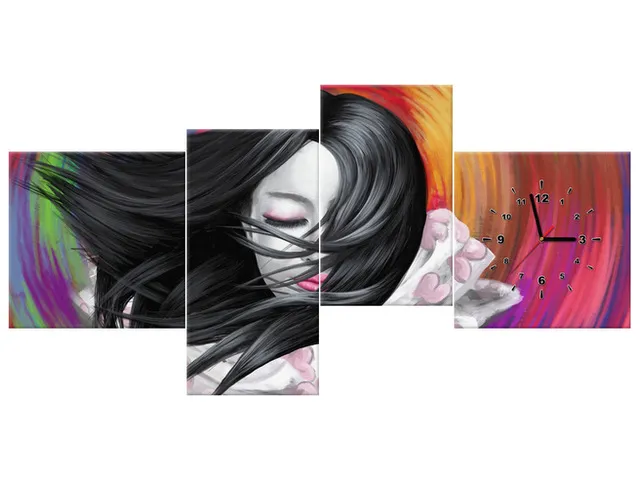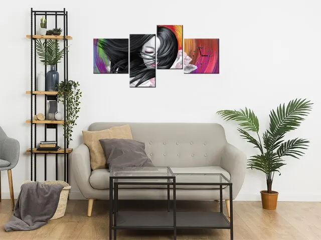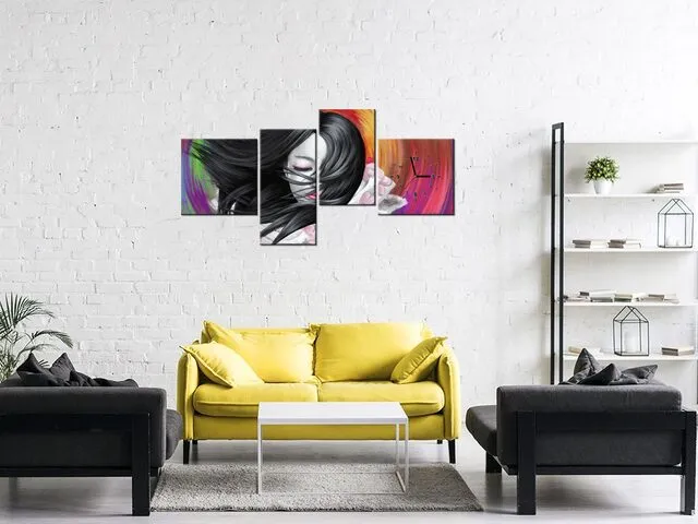Úvod » Obrazy » Obrazy s hodinami » Moderný obraz s hodinami Žena so šatkou