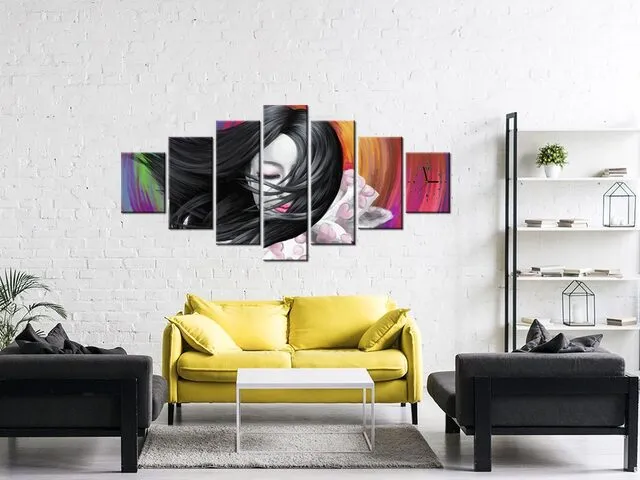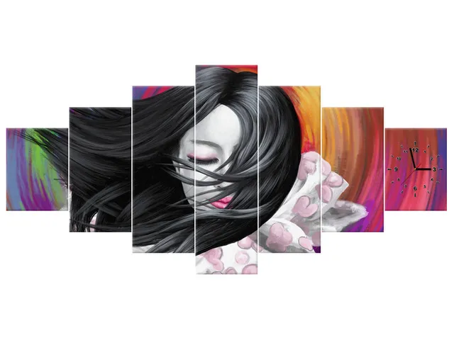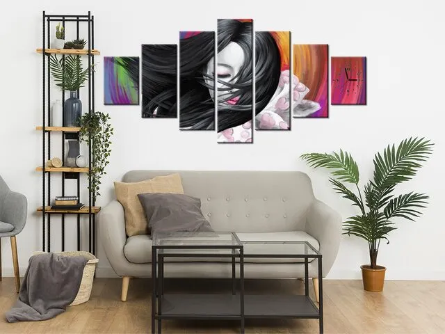 Úvod » Obrazy » Obrazy s hodinami » Moderný obraz s hodinami Žena so šatkou