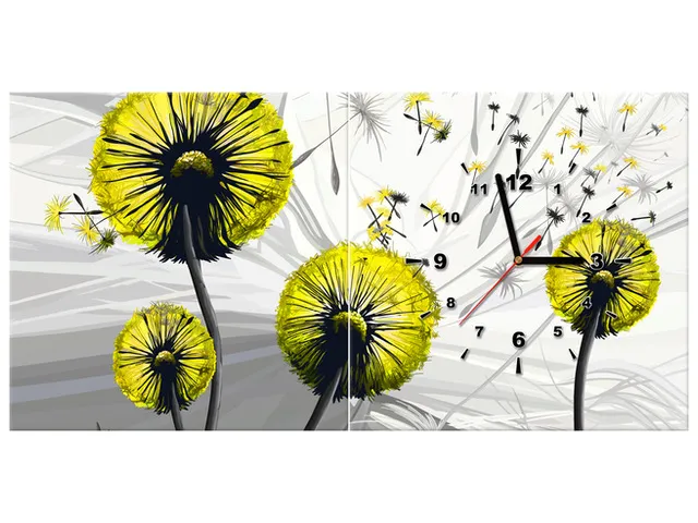Úvod » Obrazy » Obrazy s hodinami » Moderný obraz s hodinami Žlté púpavy