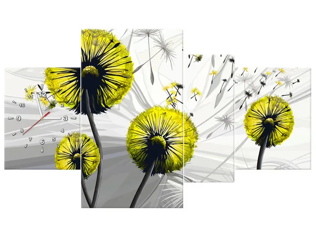 Úvod » Obrazy » Obrazy s hodinami » Moderný obraz s hodinami Žlté púpavy