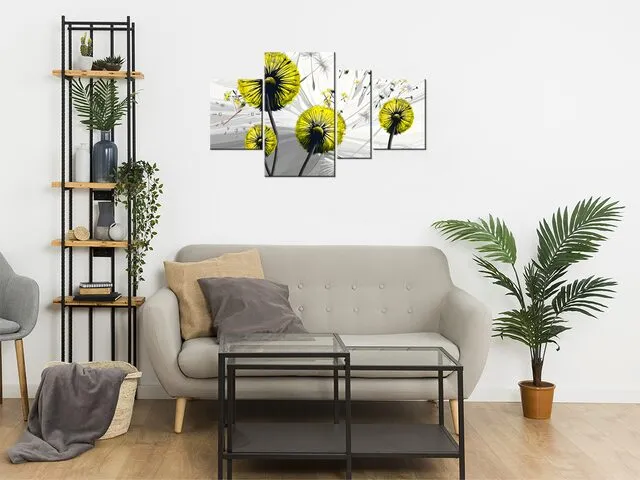 Moderný obraz s hodinami Žlté púpavy