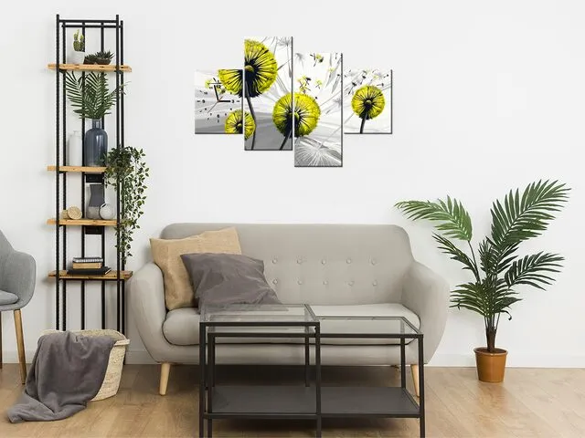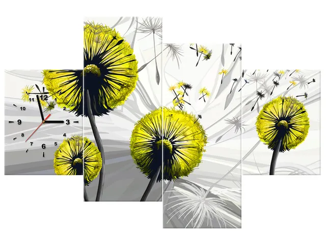 Úvod » Obrazy » Obrazy s hodinami » Moderný obraz s hodinami Žlté púpavy