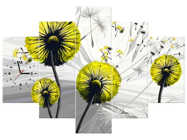 Úvod » Obrazy » Obrazy s hodinami » Moderný obraz s hodinami Žlté púpavy