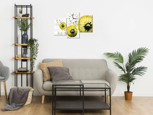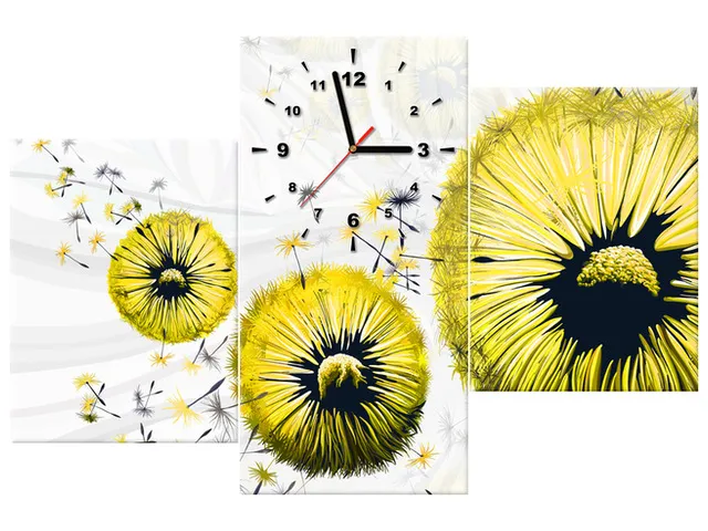 Úvod » Obrazy » Obrazy s hodinami » Moderný obraz s hodinami Žlté púpavy