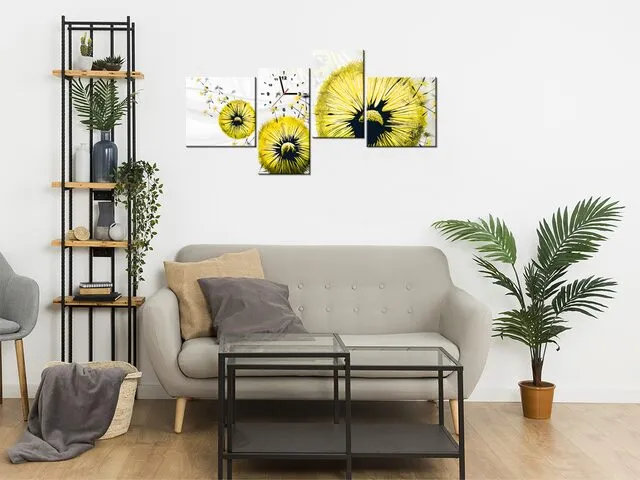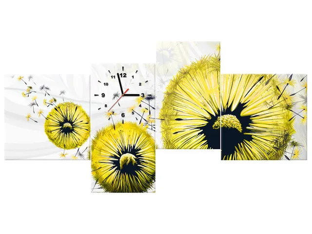 Moderný obraz s hodinami Žlté púpavy