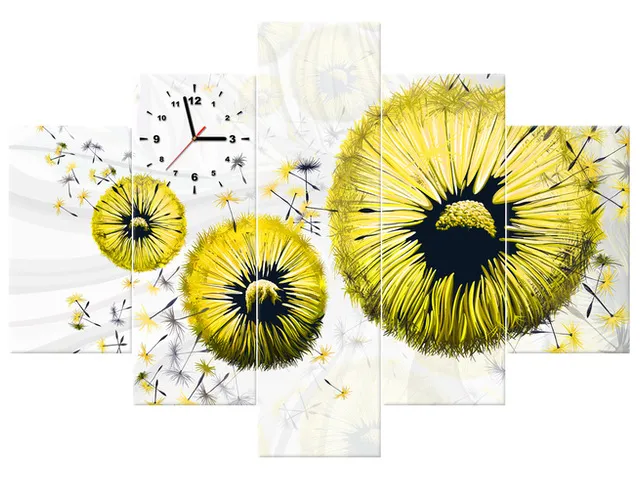 Úvod » Obrazy » Obrazy s hodinami » Moderný obraz s hodinami Žlté púpavy