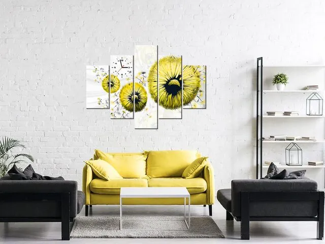 ZP5434A_5B Moderný obraz s hodinami Žlté púpavy |