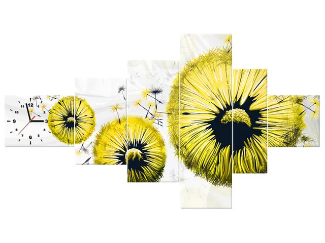Moderný obraz s hodinami Žlté púpavy