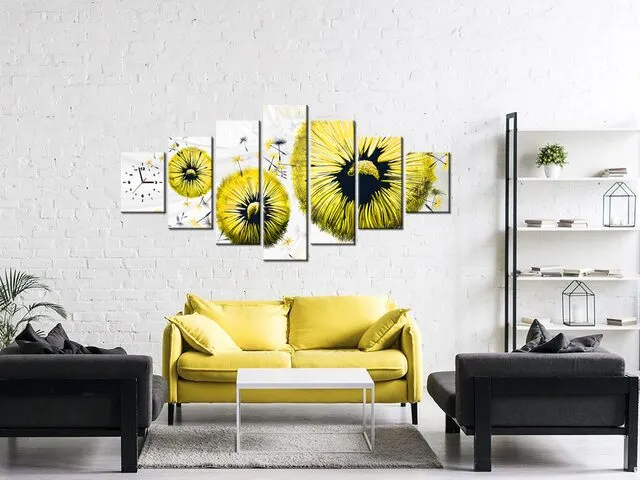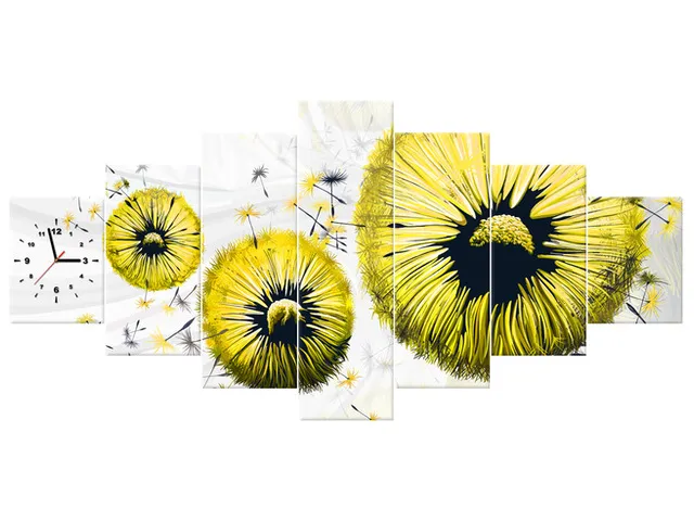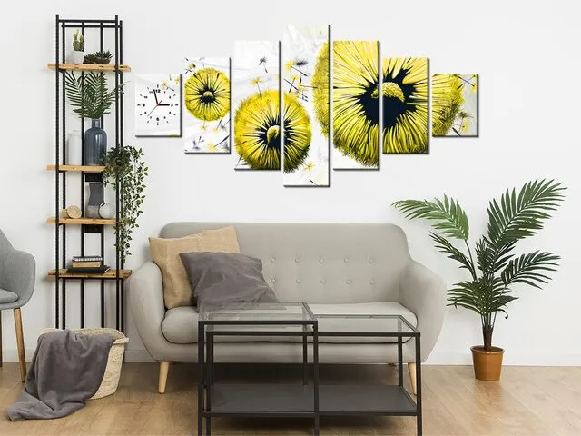 Úvod » Obrazy » Obrazy s hodinami » Moderný obraz s hodinami Žlté púpavy