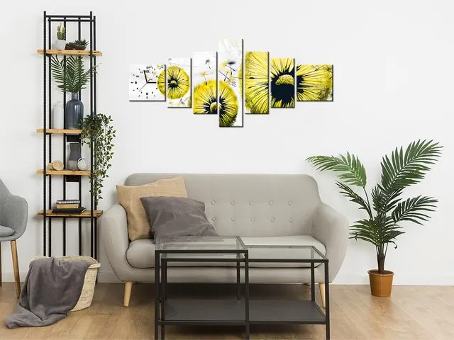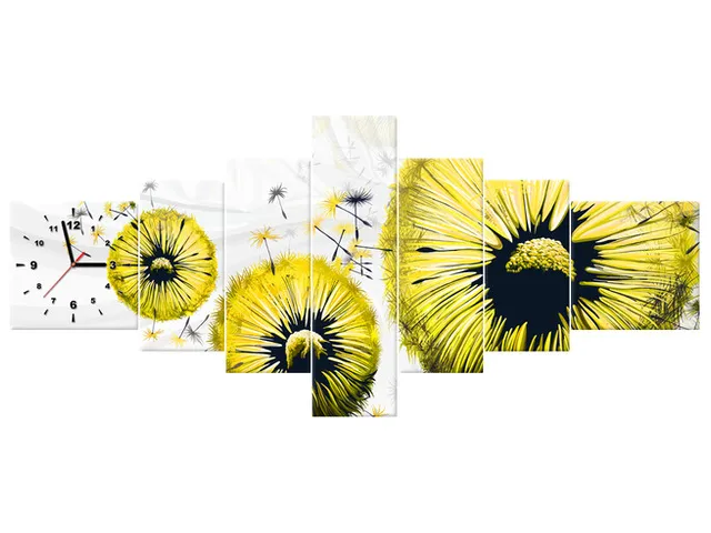 Moderný obraz s hodinami Žlté púpavy