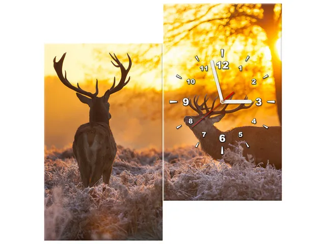 Úvod » Obrazy » Obrazy s hodinami » Moderný obraz s hodinami na plátne Jelene