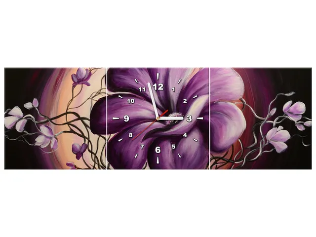 Úvod » Obrazy » Obrazy s hodinami » Moderný obraz s hodinami na plátne Kvetinový odchod