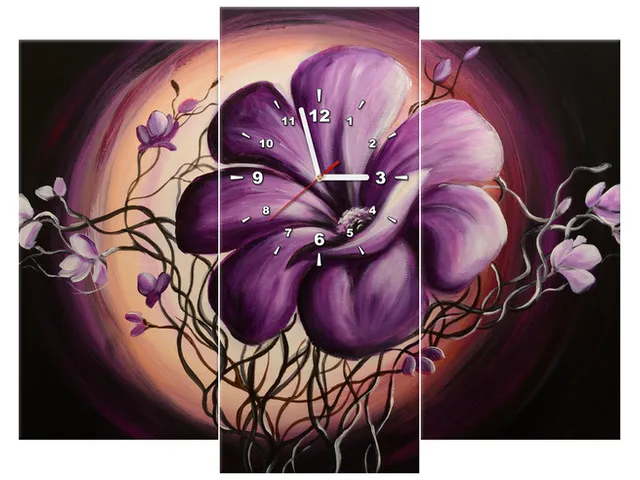 Úvod » Obrazy » Obrazy s hodinami » Moderný obraz s hodinami na plátne Kvetinový odchod