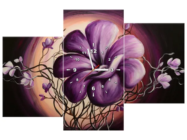Úvod » Obrazy » Obrazy s hodinami » Moderný obraz s hodinami na plátne Kvetinový odchod