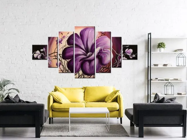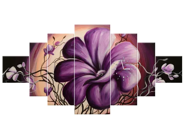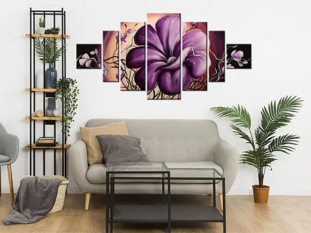 Úvod » Obrazy » Obrazy s hodinami » Moderný obraz s hodinami na plátne Kvetinový odchod
