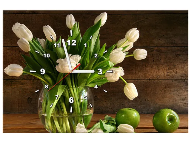 Úvod » Obrazy » Obrazy s hodinami » Moderný obraz s hodinami na stenu Krémové tulipány