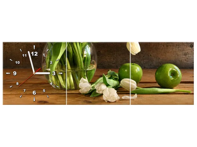 Úvod » Obrazy » Obrazy s hodinami » Moderný obraz s hodinami na stenu Krémové tulipány