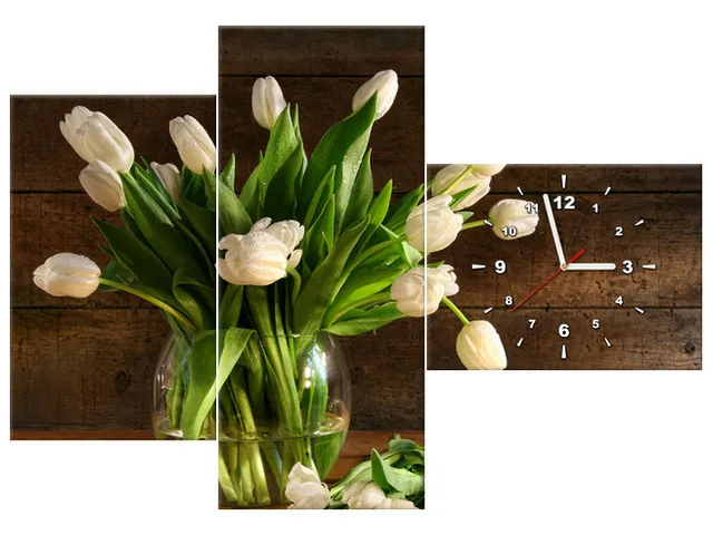 Úvod » Obrazy » Obrazy s hodinami » Moderný obraz s hodinami na stenu Krémové tulipány