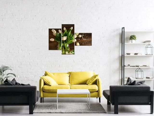 Barion Pixel Moderný obraz s hodinami na stenu Krémové tulipány