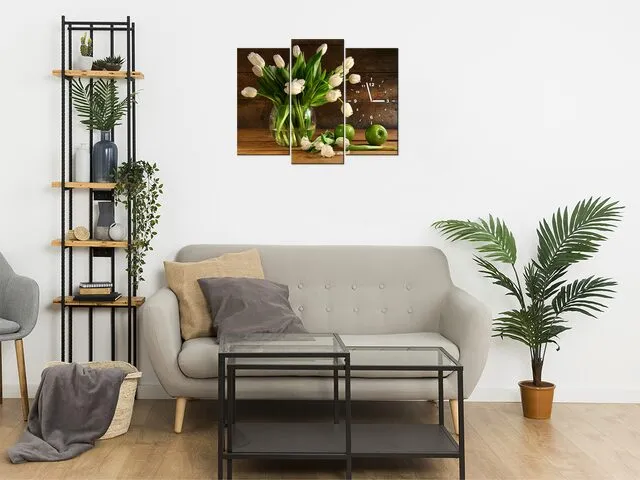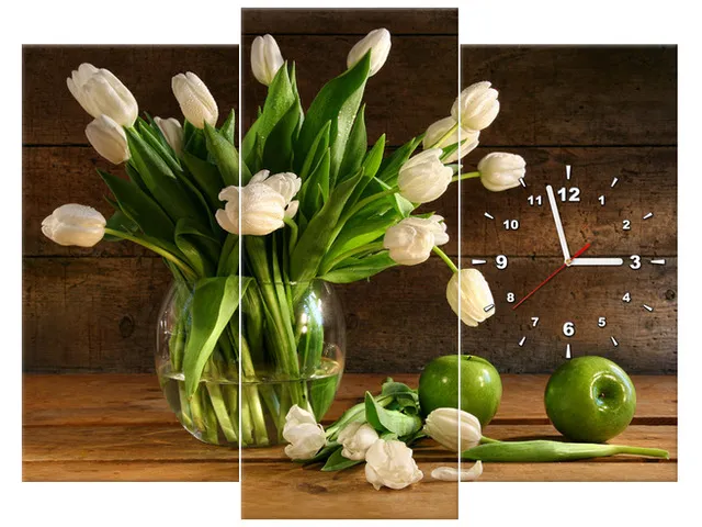 Úvod » Obrazy » Obrazy s hodinami » Moderný obraz s hodinami na stenu Krémové tulipány
