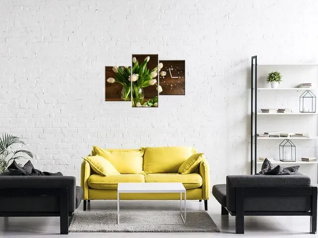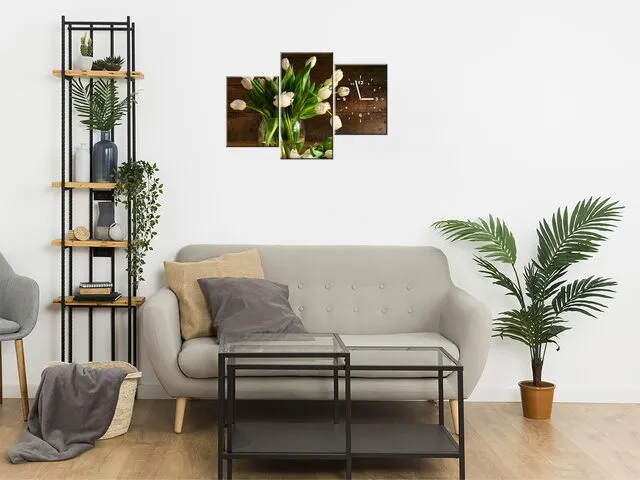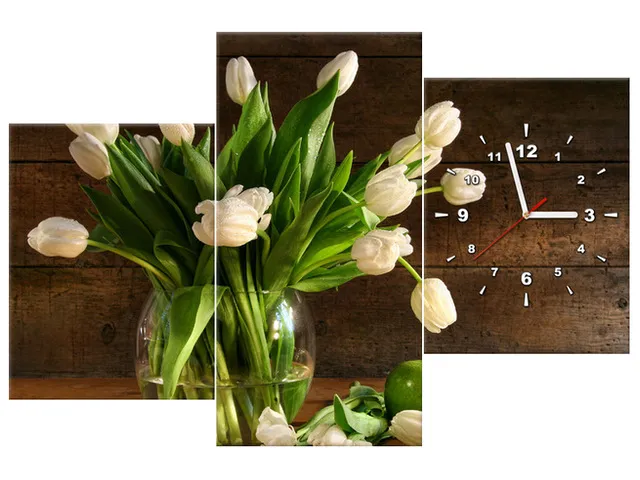 Úvod » Obrazy » Obrazy s hodinami » Moderný obraz s hodinami na stenu Krémové tulipány