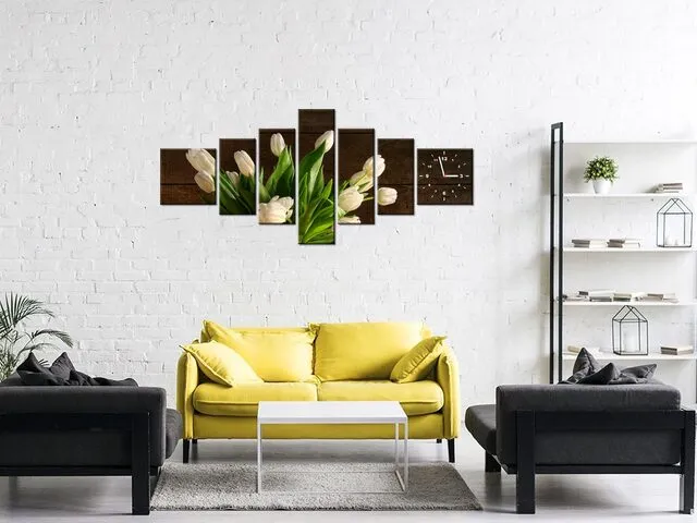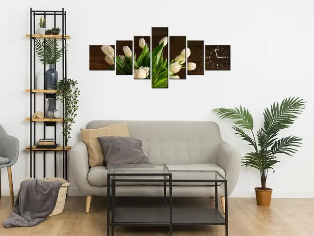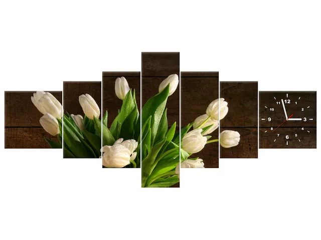 Úvod » Obrazy » Obrazy s hodinami » Moderný obraz s hodinami na stenu Krémové tulipány