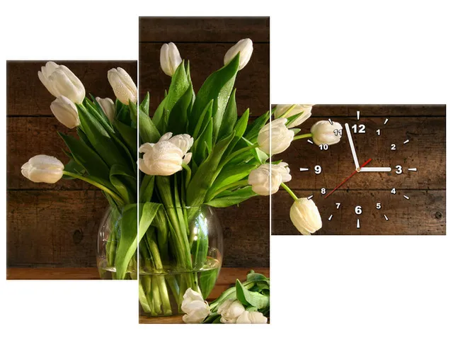 Úvod » Obrazy » Obrazy s hodinami » Moderný obraz s hodinami na stenu Krémové tulipány