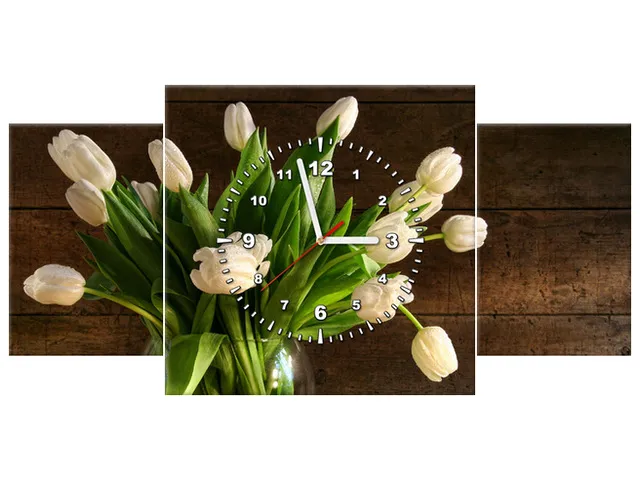 Úvod » Obrazy » Obrazy s hodinami » Moderný obraz s hodinami na stenu Krémové tulipány