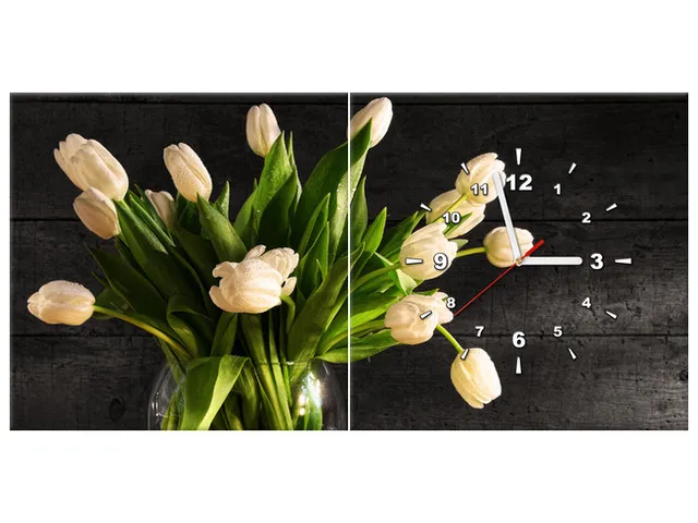 Úvod » Obrazy » Obrazy s hodinami » Moderný obraz s hodinami na stenu Krémové tulipány