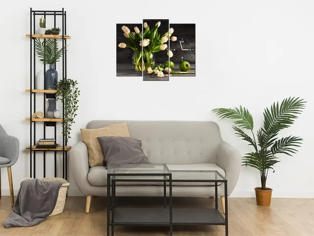 ZP1392A_3V Moderný obraz s hodinami na stenu Krémové tulipány |