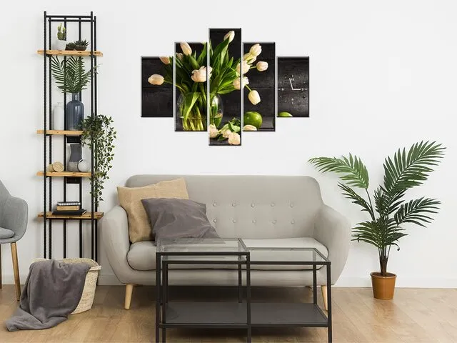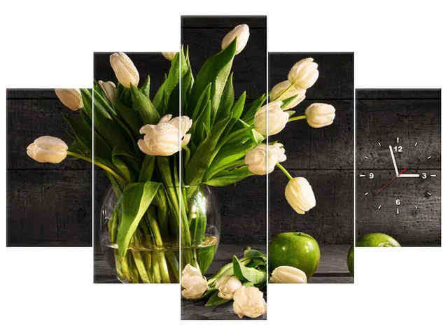 Úvod » Obrazy » Obrazy s hodinami » Moderný obraz s hodinami na stenu Krémové tulipány
