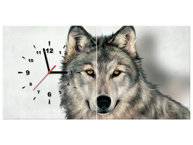 Úvod » Obrazy » Obrazy s hodinami » Moderný obraz s hodinami na stenu Vlk