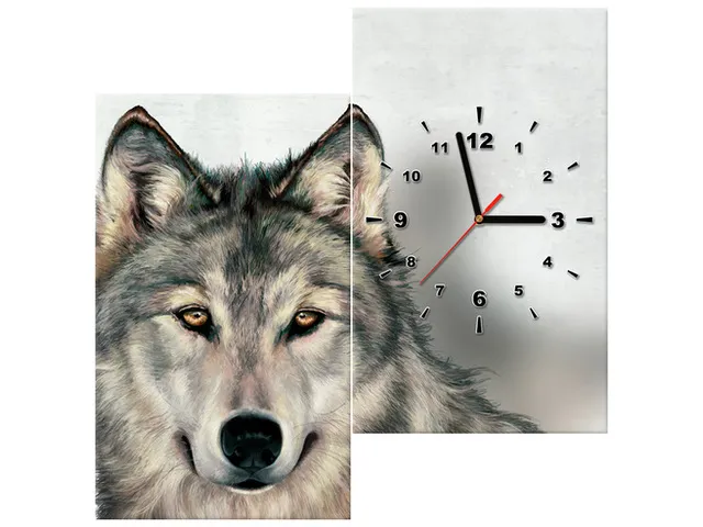 Moderný obraz s hodinami na stenu Vlk