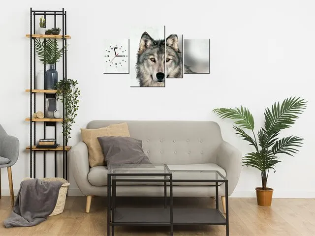 Úvod » Obrazy » Obrazy s hodinami » Moderný obraz s hodinami na stenu Vlk