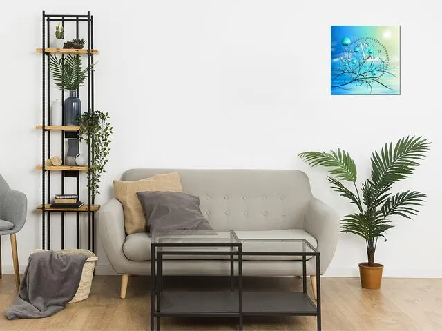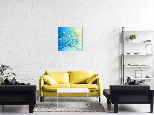 Úvod » Obrazy » Obrazy s hodinami » Modré gule v prameňoch ranného slnka - Hodiny