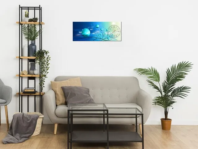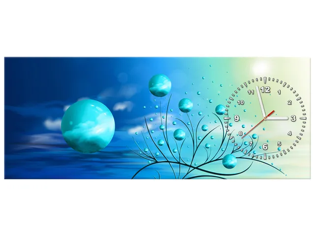 Úvod » Obrazy » Obrazy s hodinami » Modré gule v prameňoch ranného slnka - Hodiny