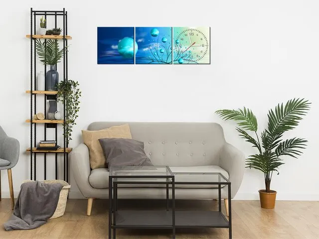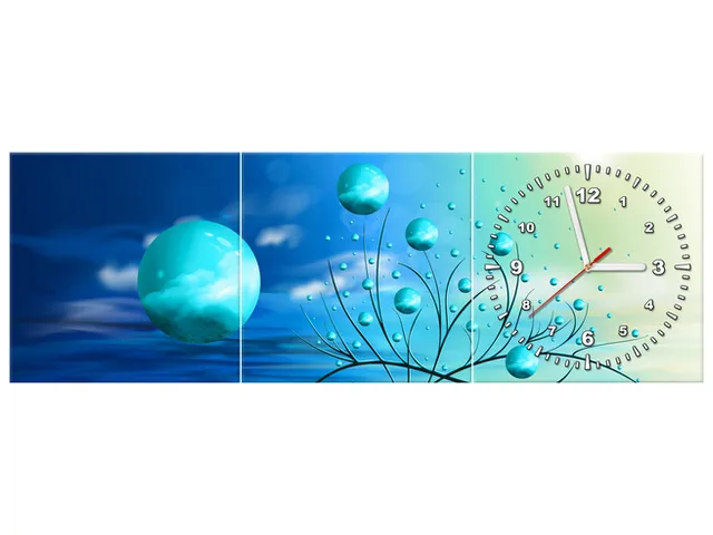 Úvod » Obrazy » Obrazy s hodinami » Modré gule v prameňoch ranného slnka - Hodiny