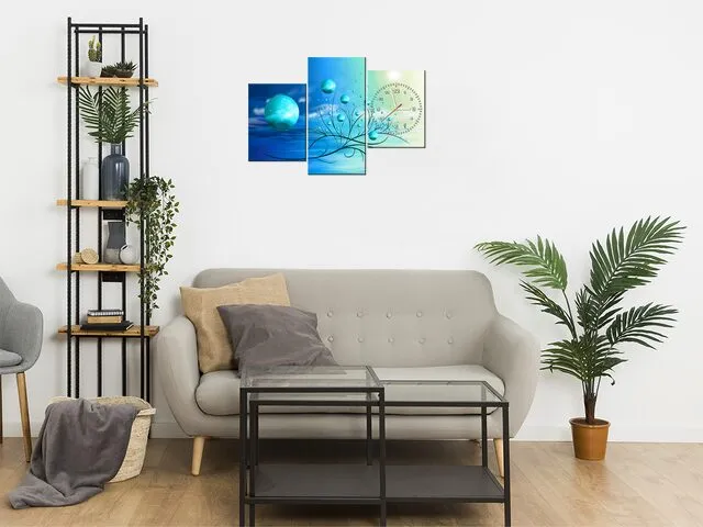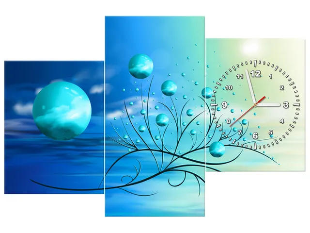 Úvod » Obrazy » Obrazy s hodinami » Modré gule v prameňoch ranného slnka - Hodiny