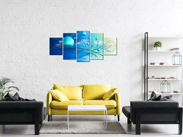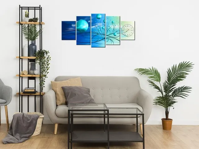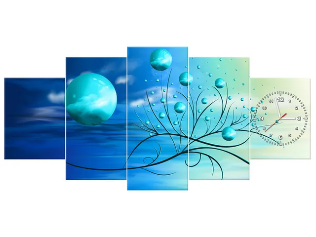 Úvod » Obrazy » Obrazy s hodinami » Modré gule v prameňoch ranného slnka - Hodiny