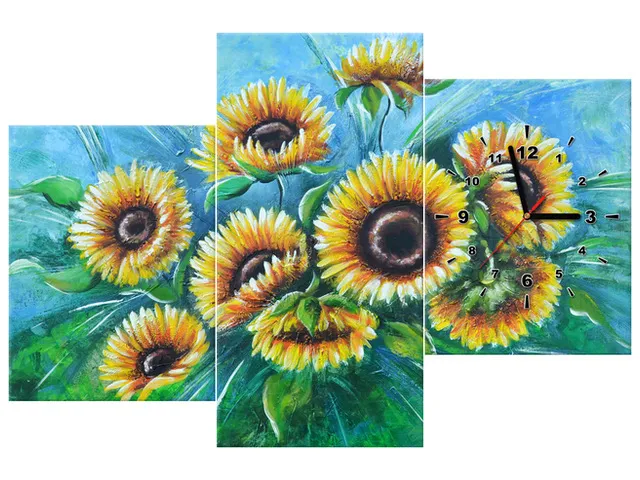 Úvod » Obrazy » Obrazy s hodinami » Modré slnečnice Obraz s hodinami