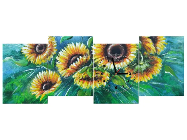 ZP3571A_4AN Modré slnečnice Obraz s hodinami |