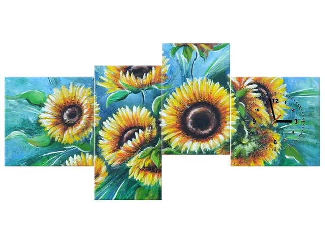 ZP3571A_3K Modré slnečnice Obraz s hodinami |