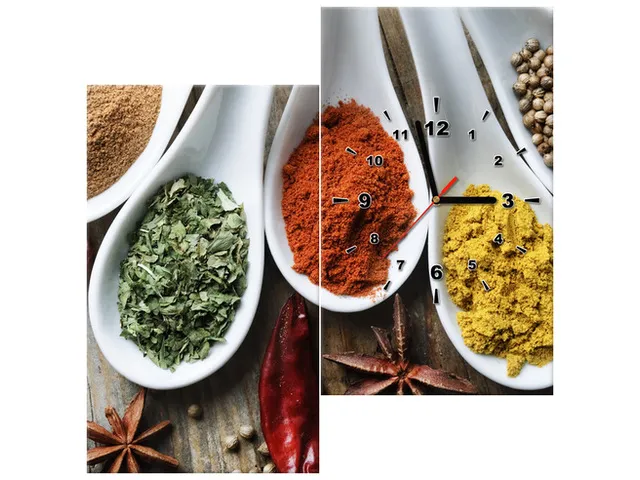 Úvod » Obrazy » Obrazy s hodinami » Nástenné hodiny do kuchyne Korenie
