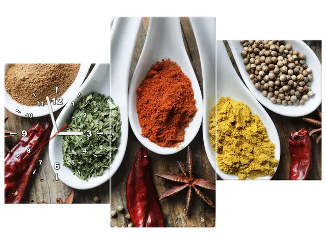 Úvod » Obrazy » Obrazy s hodinami » Nástenné hodiny do kuchyne Korenie