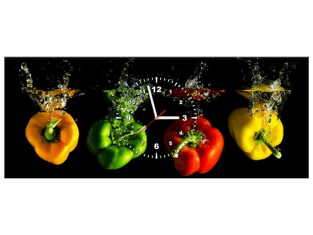 Úvod » Obrazy » Obrazy s hodinami » Nástenné hodiny do kuchyne Padajúce papriky