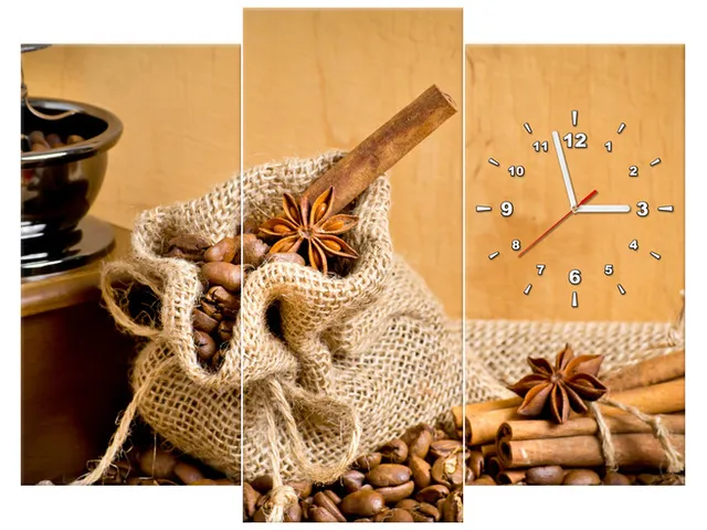 Úvod » Obrazy » Obrazy s hodinami » Nástenné hodiny do kuchyne Voňavá káva