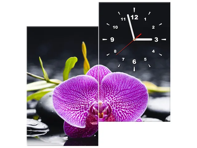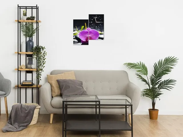 Úvod » Obrazy » Obrazy s hodinami » Nástenné hodiny do obývačky Orchidea