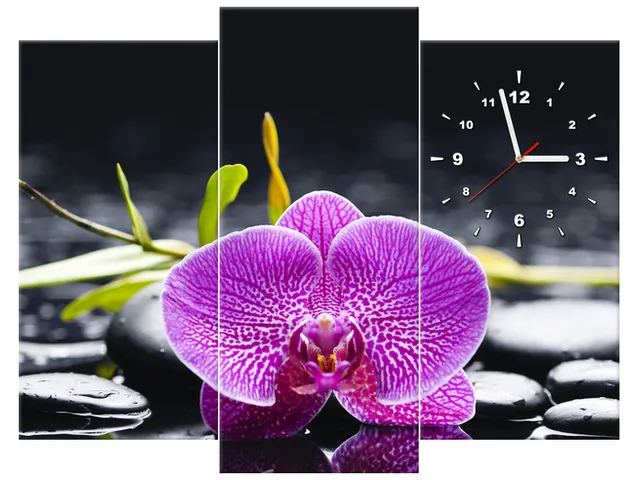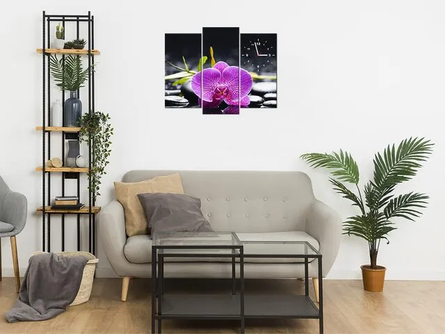 Úvod » Obrazy » Obrazy s hodinami » Nástenné hodiny do obývačky Orchidea