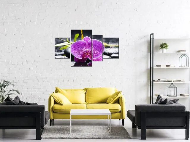 Úvod » Obrazy » Obrazy s hodinami » Nástenné hodiny do obývačky Orchidea