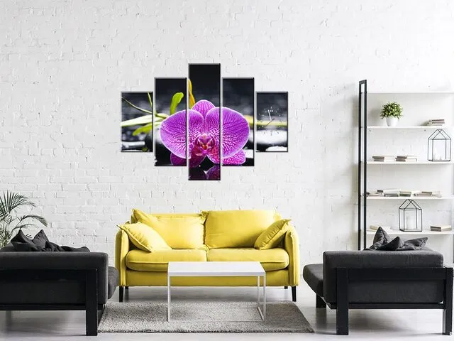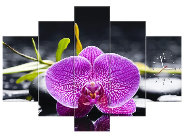 Úvod » Obrazy » Obrazy s hodinami » Nástenné hodiny do obývačky Orchidea